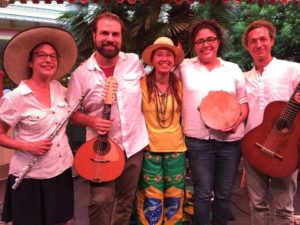 Hailing from Rio de Janeiro, Kátia Moraes and Brazilian Hearts bring choro and samba to Culver City this summer. Moraes’s singing, as praised by the Los Angeles Times, “is a virtual definition of the passion that is an implicit part of Brazilian music.”Featuring Nando Duarte, Ted Falcon, Fay Roberts and Clarice Cast. Moraes began performing in the 1980s, sharing the stage with the high-energy Brazilian band O Espirito da Coisa. Since then, she has worked with some of the foremost acts around the globe, including Sergio Mendes, Airto Moreira, Oscar Castro-Neves, Rita Lee, Elba Ramalho, Sandy and Junior, Banda Cheiro de Amor, George Duke, Alex Acuña and Justo Almario’s Tolú, Latin Project, and Praful. In 1990, she moved to LA, where she began working as a voiceover artist in film and television. She also continued singing with the likes of Pure Samba, Feijoada Completa, Samba Society, Bloco Nove, Falso Baiano, The Rio Thing, Midnight Drums, Sol & Mar, Folk Ballet of Brasil, Badauê, Man and Machine, and many more. She is currently singing with Brazilian Hearts—Choro & Samba, Samba Society, and Viver Brasil Dance Company. In 2011, Moraes created the annual musical entitled Brazilian Heart, a Celebration paying homage to inspiring Brazilian singer-songwriters. She has released numerous albums, including Ten Feet and the Sun with Brasil Nuts band, Ginga, Navegar ao Sol, Live, Tribo with Sambaguru, and two EPs. In 2018 she released Mistureba. Her work with the Pure Samba project was awarded the LA Treasure Award, granted in part by the California Traditional Music Society, a facility of the City of Los Angeles Cultural Affairs Department. In Culver City Kátia with be accompanied by Nando Duarte on 7-string guitar, Ted Falcon on mandolin and violin, Clarice Cast on percussion, and Fay Roberts on flute.