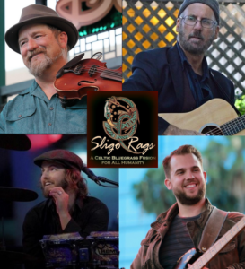 Music Award for Best Folk Band, Sligo Rags is taking the local and not-so-local Folk and Celtic music scenes by storm with a unique blend of eclectic musical influences. Dan Miller of Flatpicking Guitar Magazine says “These guys have it all–great vocals, lots of energy, captivating songs, well executed arrangements, and tasteful solos.” Their debut studio recording, “The Night Before the Morning After”, was called “the best I’ve heard from a stateside band” by Celtic Beat Magazine, while their sophomore effort, “The Whiskey Never Lies,” (called “the best from the West Coast Celts in many years” by Shay Clark of the Irish American News), was named one of the top 10 by Folkworks. Don’t be surprised if elements of country, gypsy jazz, and swing manage to sneak their way into the act as well. Award-winning flatpicking and fingerstyle guitarist David Burns (recently featured in Flatpicking Guitar Magazine), fiddler extraordinaire Michael Kelly, renowned bassist Nathan York Jr., and percussion whiz-kid Jonathan Baer are guaranteed to fill the room and your lives with electricity. They may give you a good laugh or two along the way as well.